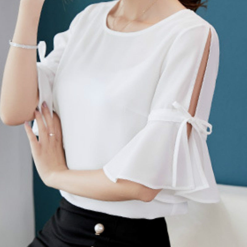 Brand Name: Liva girlMaterial: Polyester,SpandexClothing Length: REGULARStyle: Office LadyFabric Type: BroadclothSleeve Length(cm): ShortDecoration: RufflesPattern Type: SolidCollar: O-NeckSleeve Style: Flare SleeveModel Number: C759RXPlace Of Origin: China (Mainland)Gender: WomenColor: White, red, blue.size: S,M,L,XL,XXLYear of listing/season: Summer 2019