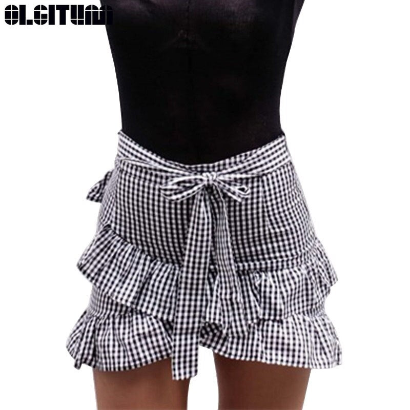 Gender: WomenDresses Length: Above Knee, MiniStyle: CasualBrand Name: OLGITUMPattern Type: PlaidWaistline: empireMaterial: Cotton,PolyesterModel Number: SK397Silhouette: A-LineDecoration: Ruffles